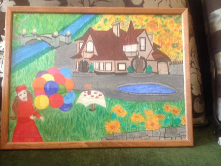 А это вот ниже я рисовала еще летом, но руки не дошли показать! Картину над кроватью в спальню давно хотела, а то место пустое мне не нравилось. Даже не знаю, как назвать ))
