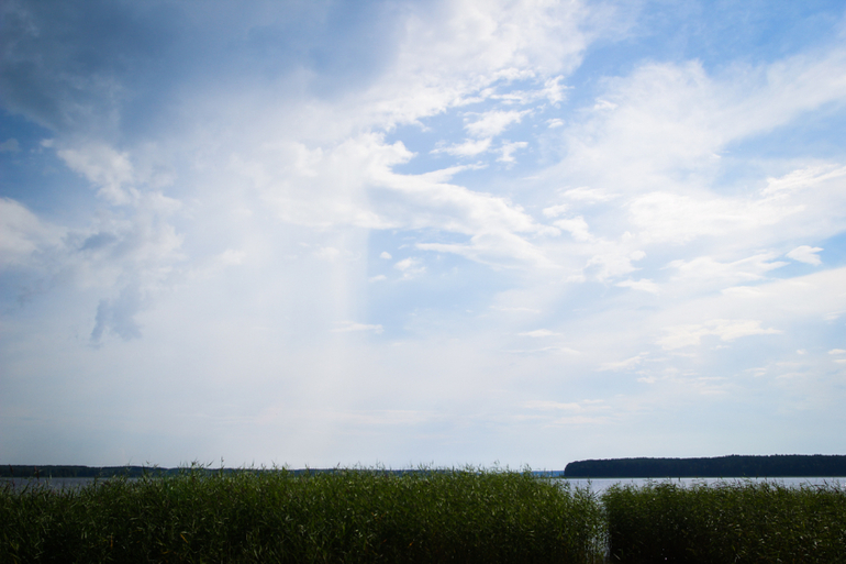 А погода на Селигере вообще жуть! никакой стабильности! Сидишь на пляже, гром громыхает, дождь прям стеной. радуга. и все это удовольствие где-то там, а ты сидишь, жаришься на палящем солнце! безобразие.