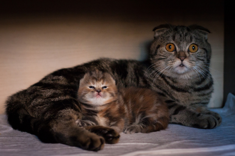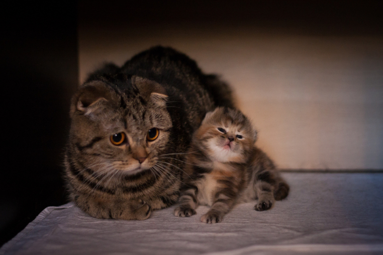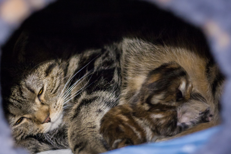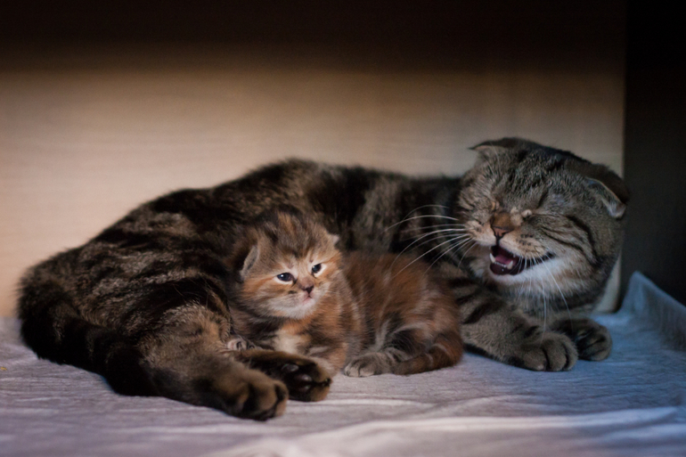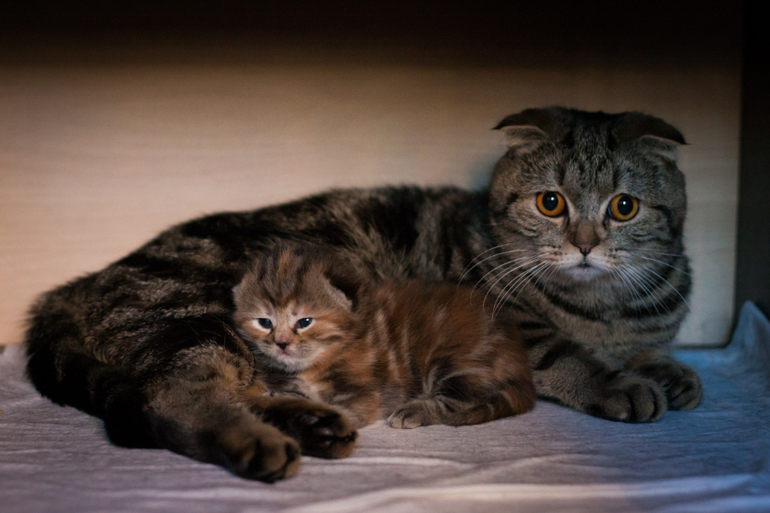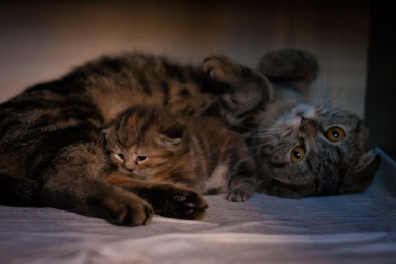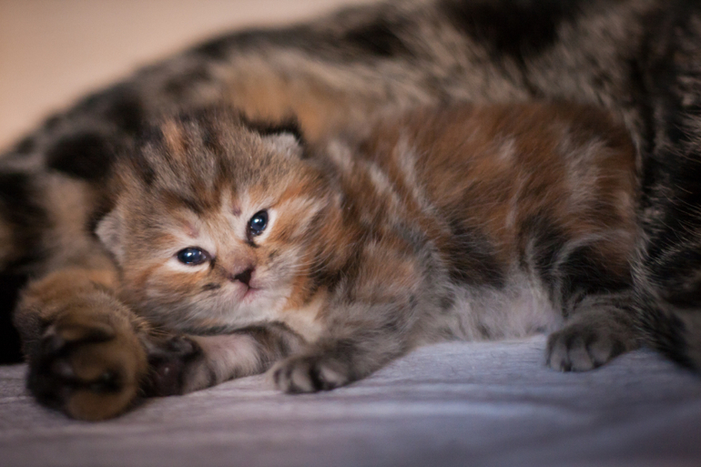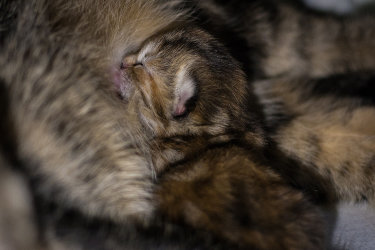И знаете, родила она мне самого прекрасного котенка в мире! Это вот на следующий день после родов.