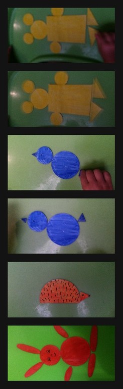 Сложили героев сказки из вырезанных геометрических фигур.