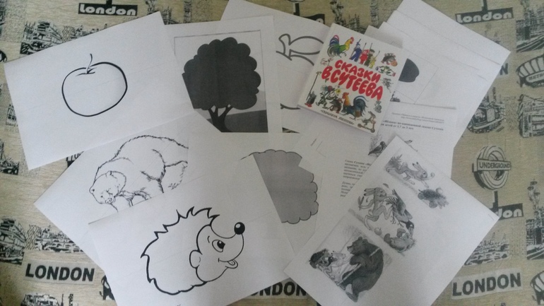 Пишу отчет о нашем участии в ТЗ "Яблоко" по сказке Сутеева. На подготовку к занятию у меня ушло полдня, принтера цветного нет, решила вырезать и сама раскрасить материал, кое-что было вырезано из старых выпусков "Школы семи гномов". (Сразу прошу прощения за качество фото)