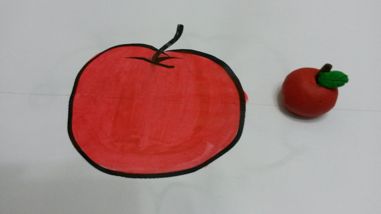 Раскрасили шаблон яблока и слепили яблочко из пластилина(вместе)