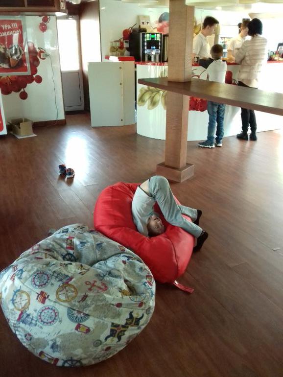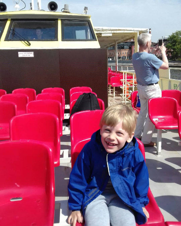 Внутри на теплоходе есть туалеты, бар, большой телевизор с мультами и кресла-подушки. Всего плыть около 2-ух часов. От Зарядья, мимо парка Горького, Лужники и обратно. Нам надоело через час и мы вышли на Воробьевых горах.