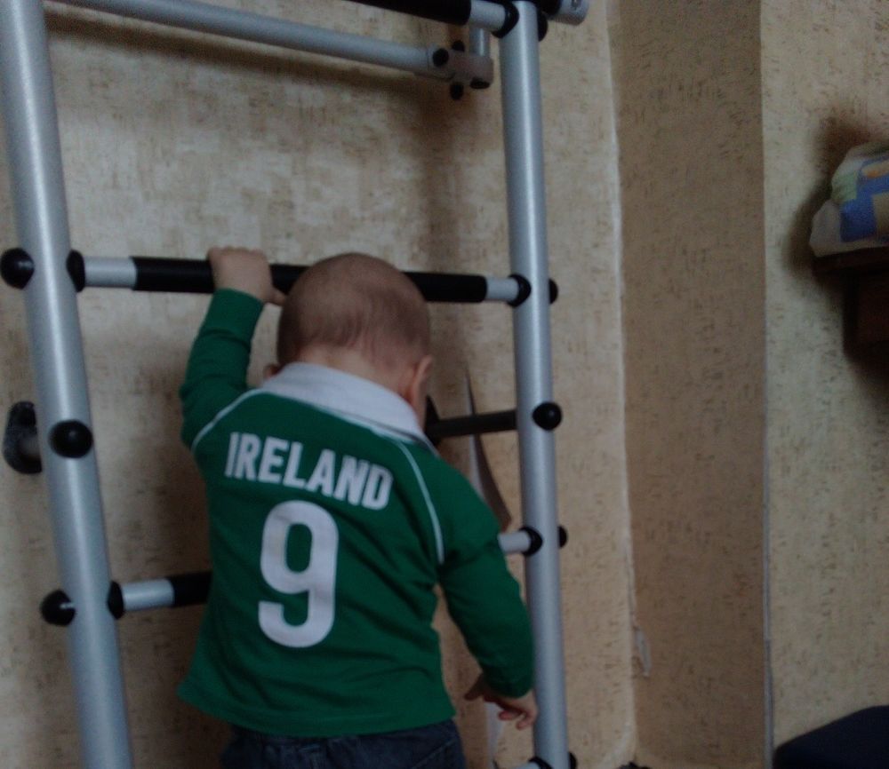 Поставили очередную прививку по календарю- гепатит. Вес 8800, рост 73(бу...) Лазит уже везде, где только можно,но особенно там,где нельзя. Стянуть гладильную доску, уволочь папины гантели, за провод катать утюг- это все про нашего Вову. На спинку дивана почти научился карабкаться, очень надеюсь, что забудется у него и не кувыркнется в угол за спинку углового дивана. Цепляясь за радиатор встаёт на трубы отопления, лазит на шведскую стенку. Пытаюсь на руках носить чаще, но не особо ему нравится- выкручивается,пищит, требует отпустить. Ждём, когда этот неугомонный человечек подрастет, чтобы безопасно передвигался сам. Из звуков и подобных умелок- говорит мама, надо, да, нет, щелкает языком, цокает, чмокает как поцелуй. "Пока" не машет