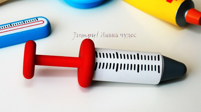Обратите внимание, что у шприца поршень двигается! Думаю, что юные Айболиты будут просто в восторге, делая укольчики ))))