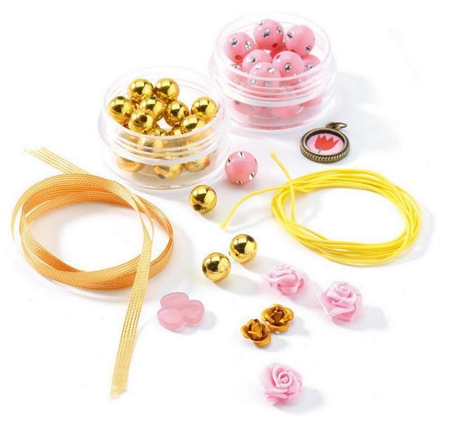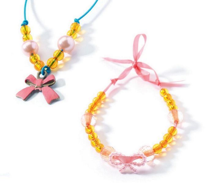 В набор входит: набор заколок и резинок для волос (2 вида), колечко, браслет, бусы или колье.