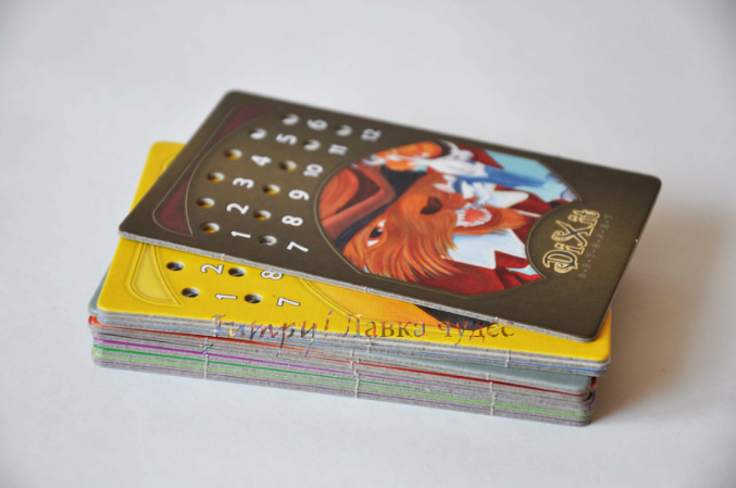 В комплекте: 40 карточек из пластика, которым не страшны ни дождь, ни ветер, ни грязь; серебрянный пластмассовый тотем; специальный брелок-крепление для тотема и карт; правила игры. .