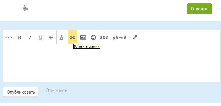 В окне ответа нажимаете кнопочку "вставить ссылку" (выделена желтым на фото), в появившемся окне в поле "Адрес" вставляем ссылку нужную, нажимаем кнопку "вставить" (внизу слева) - готово :)