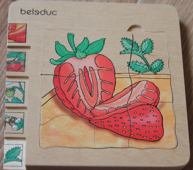 С помощью этих пазлов дети узнают как растет клубника. Каждый пазл в этой серии – целая история. Задача ребенка – собрать не только части каждого пазла, но и сложить слоями все пазлы в правильной последовательности.