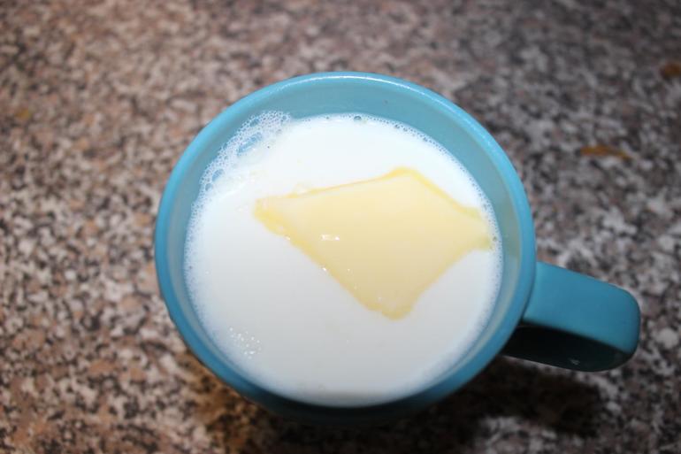 Молоко подогреваем, можно в микроволновой печи и растворяем там масло.