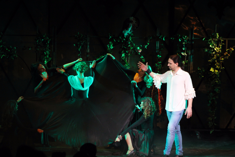 Сам спектакль очень интересно поставлен. С одной стороны, это не классический сюжет, когда поднимается занавес и вот мы видим дворец короля, мушкетеров и т.д. Здесь гораздо сложнее: ставится спектакль, готовятся костюмы "из того, что под рукой" ( и при этом очень достойно и эстетично сделаны), современные люди приходят на кастинг, чтобы стать Атосом или Д Артаньяном. Но уже через 15 минут ты забываешь про это и проваливаешь в соответствующую эпоху. Грань стирается просто осязаемо.