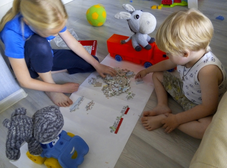 Еще распаковала новую раскраску-пазл, ну два часа совместной игры.