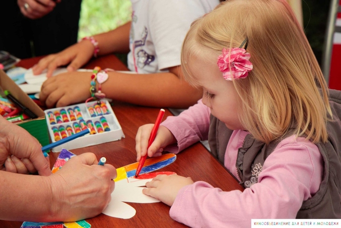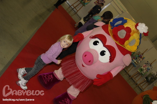 Сходили мы в прошлую субботу на открытие фестиваля "Страна Мультфильмов" в кинотеатре "Полет" (благо кинотеатр в минуте ходьбы от нашего дома). Само открытие понравилось. Дети рисовали птиц и пчелок (или потом украшали стенды). Аниматоры проводили игры. Были несколько ростовых кукол (Микки Маус, Шрек, Белка из "Ледникового периода" и Чебурашка). Всем детям давали подарки (Краски и журналы "Лунтик" и "Семья Барбоскиных", потом еще дарили подборку журналов Мурзилка) - очень неплохо на мой взгляд :). Приехало телевидение и брало у детей интервью. В том числе у Сони, притом она была одна из самых маленьких, но очень должго рассуждала о мультиках на камеру, с уморительными рассуждающими жестами. Вот только (а что делать, ребенок сказал правду), честно призналась, что любит она вовсе не отечественную анимацию, а Микки Мауса, и клуб Микки Мауса, а еще Русалочку, и Красавицу и Чудовище, потому что там очень красиво поют. Так что российская анимация как -то оказалась в пролете.