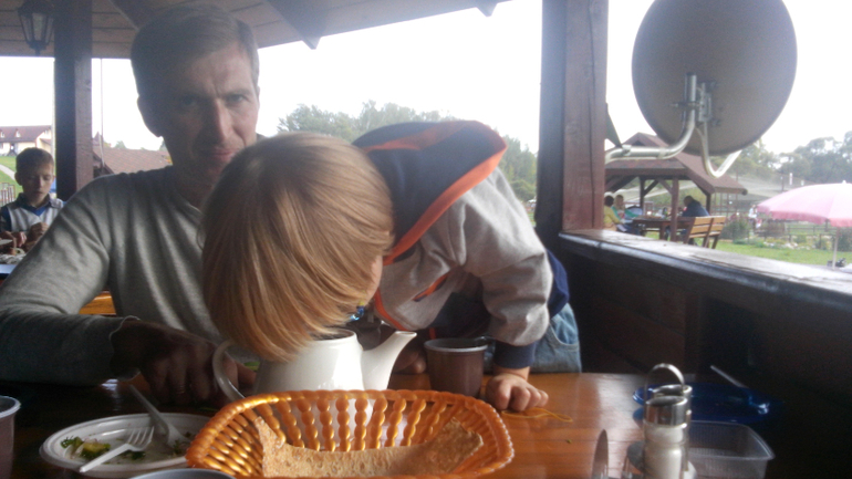 Про кол-во времени затраченное на дорогу туда стоит промолчать, ибо это бред столько ехать каких то жалких 140 км. На обратном пути посмотрев навигатор, мы бодро и дружно решили, что остаемся ночевать в гостинице Иволга и едем утром :) Вполне тоже на уровне. Леха рвался спать на большую кровать, но в итоге удовлетворился креслом - кроватью (для меня совместный сон с детьми всегда был нонсенс, а сейчас и тому подавно). Телефоны наши дружно сели вечером тоже и поэтому фоток с Иволги нет к сожалению, но там не было ничего интересного. На самом деле это очень неплохой вид отдыха кататься по таким турбазам на выхи, но нормальные стоят почему то каких то странных денег, которые стоить не должны никак! а в не нормальных делать нечего.