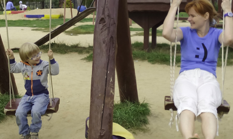 А. Там где большая зеленая горка и маленький Леха наверху, то это я специально так сфоткала )) Он туда взлетел за доли секунды вообще, как таракан )) И сверху орал нам "я тууут" )))