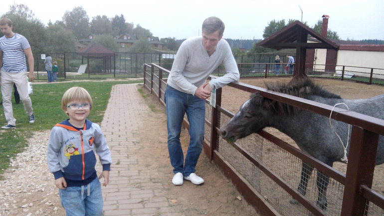 А мы в последний день подсуетились и прокатались в парк птиц, который объективно где черте где :) 75 км от МКАД :) Воспоминания меня не подвели, там все так же чУдно. Леха был в восторге от птичек, как ни странно не боялся здоровенных быков и кормил их с рук травой!!, катался на лошади два раза (второй раз покатали бесплатно, потому что восторг был искренний и парень который водил коняку сам предложил). Мне лично понравились пучеглазые совы и пушистые курицы, павлины были все как один без хвостов, а все потому что суки работники делают на этом деньги и продают перышки по 100р. С совой Леха фоткаться отказался, она так строго на него смотрела из под лобья, что он решил, что лучше всего держаться от нее подальше (строго смотрела она на самом деле на самокат, как мне объяснили, потому что испугала неведомого большого предмета).