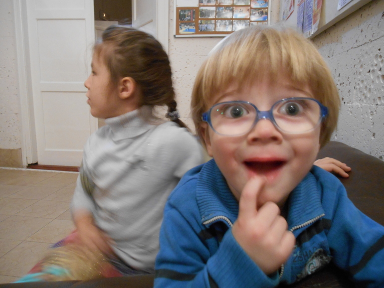 Лучше покажу фотки вам с улицы и после школы, как называет Леха развивашки :)) Няня его фоткала. Рожи корчить он мастер :)