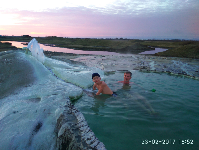 Я честно не рискнула раздеться. Но все еще впереди )) А так погода прикольная. Солнышко и плюс 15, снега нет )