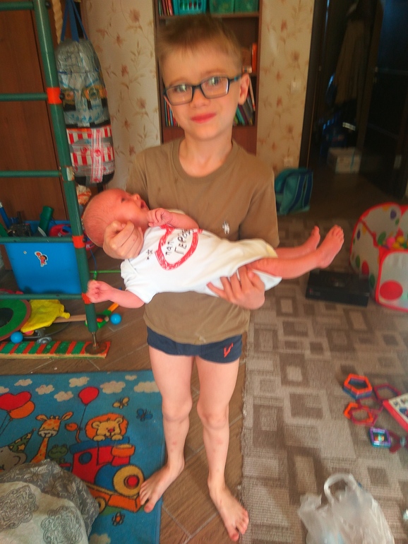 И правда очень на тебя похож))) здоровья вам всем! Старшенький таскает? Или для фото взял? Мой прям любит мелкого потаскать и потискать)))