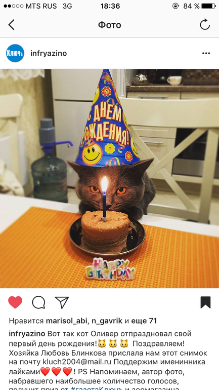 Девочки! Если вам не трудно, поставьте пожалуйста свой лайк моему коту Оливеру! Буду очень признательна