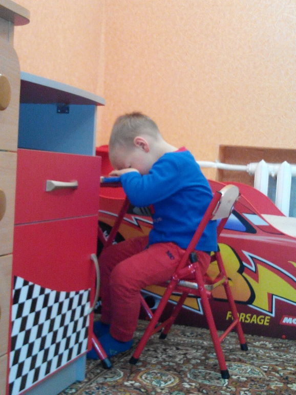самзашел в ванную мыть руки.И потом зашли в его комнату, я посадила его за столик ,и он сидел и молчал.Я сказала что он наказан. Просидел так молча 50 минут.Потом вышел и начал спрашивать где пистолет) , я ответила что он наказан и чтоб пошел и сел. Он вернулся молча и сел. Я зашла в комнату,а он опять "не буду больше",говорю что не будешь? А он "убегать".. У меня слезы на глазах ,села на колени,он пришел ко мне , обнял меня и поцеловал.. Потом принес книжку и попросил чтоб почитала..