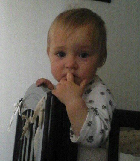 Сделала первые попытки залезть на нашу кровать. При мне долго кряхтела, и хоть до цели чуть-чуть оставалось, так и не смогла. Муж же потом рассказал, что он видел, как в другой раз все-таки Полине удалось забраться. В общем, осваиваем новые территории.