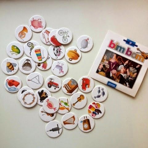 Фишки с изображением источника звука, диск с записью и 4 двухсторонних поля.