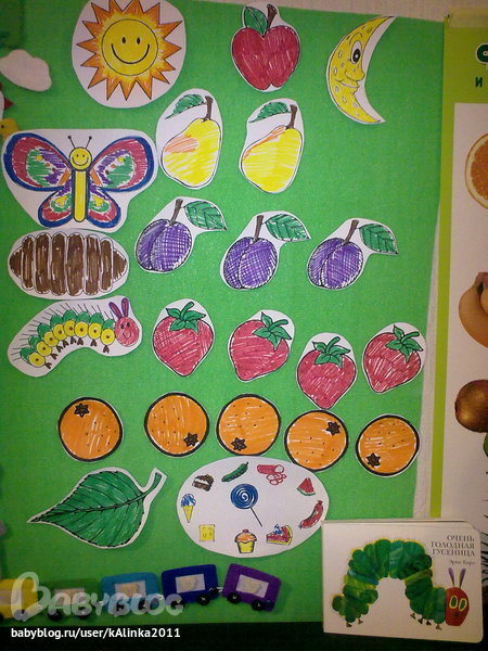 перед дневным сном опять читали ИДЕМ ЛОВИТЬ МЕДВЕДЯ И БАЮ БАЮШКИ ЛУНА. Вечером читали ОЧЕНЬ ГОЛОДНУЮ ГУСЕНИЦУ с показом на ковролинографе,