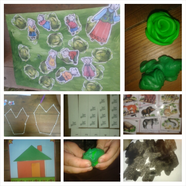 Еще мы делали найди лишнее, и прятали всех от волка (и волка тоже).