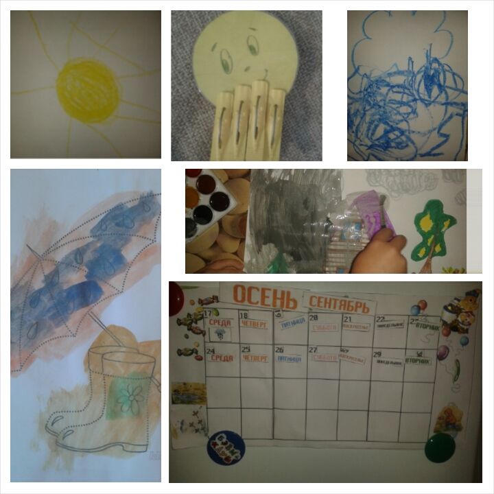 А вечером рисовали все те же погодные явления на асфальте мелом и перед сном почитали стихи об осени.