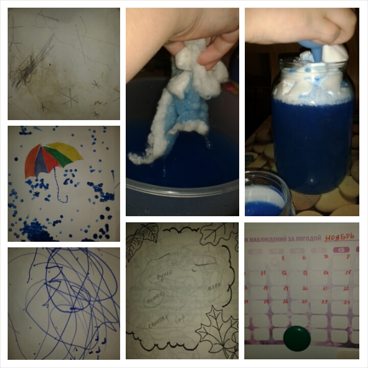 После делали тучку из ваты. пока вата не стала мокрой-примокрой не остановились))