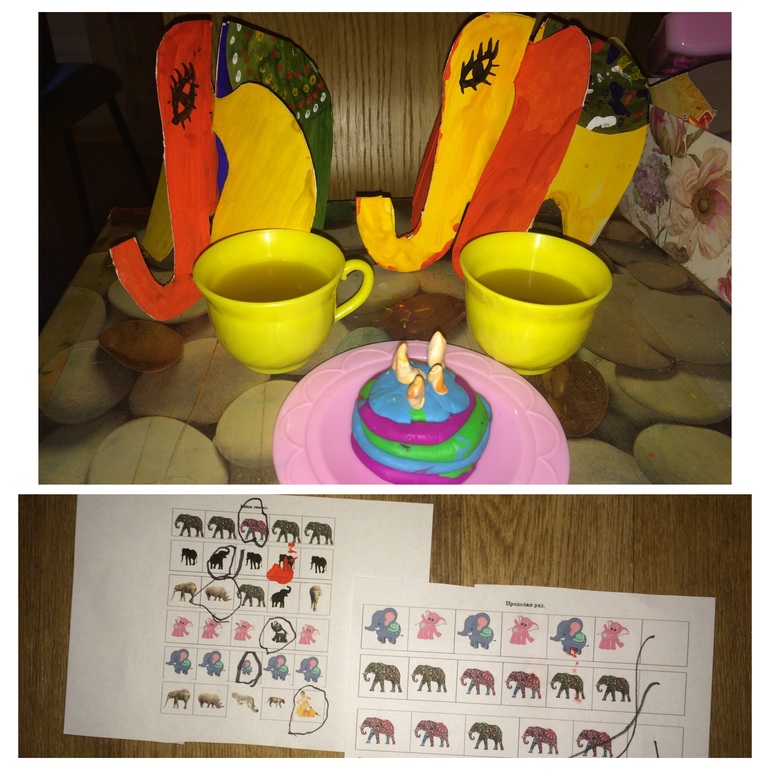 Слоны ( у нас 2 маме и Грибочку) у меня вышли кривоватые. в смысле уши короткие(( Так что братья слоники ждали гостей на день рождения и мы помогали им быть крсивыми в этот праздник