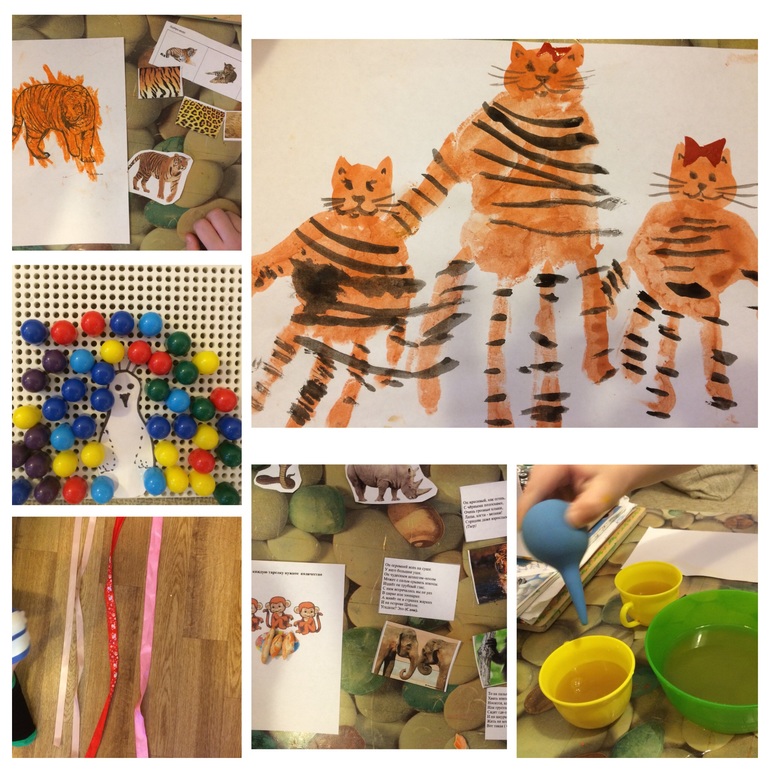 Дальше мы раскрашивали карту страны, искали пару среди животных, искали лишнюю картинку, провожали зверей в горы и джунгли (я сначала сделала. а потом поняла, что Света предлагала картинки раскладывать, но вообщем у нас совместилось с проводилкой)