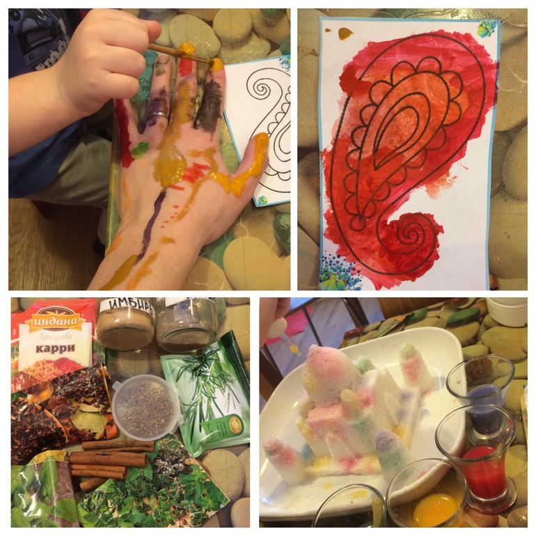 Вспомнили Тадж-махал. Я на лето уже кое-какие новые формочки для песка купила. В том числе Тадж-махал. Эту идею я видела у Ирины, все хотела воплотить а тут такой повод. килограмм соли, немного воды и цветная вода с пипетками. Нам понравилось Правда деть еще все рассказывал индианкам))) Заодно мы повторили весь пройденный материал, кто живет из животных, как называются одежды, где находится страна и еще много всякого))) Ребенку дамы явно понравились) Собственно они до вечера так и ходили везде с нами "Мама, а что индианки сказали?" какие болтушки эти индийские женщины Даже спать легли на бортик дивана с обещанием к завтрашнему утру покрыться скотчем для прочности) Счас будут марафет наводить)))