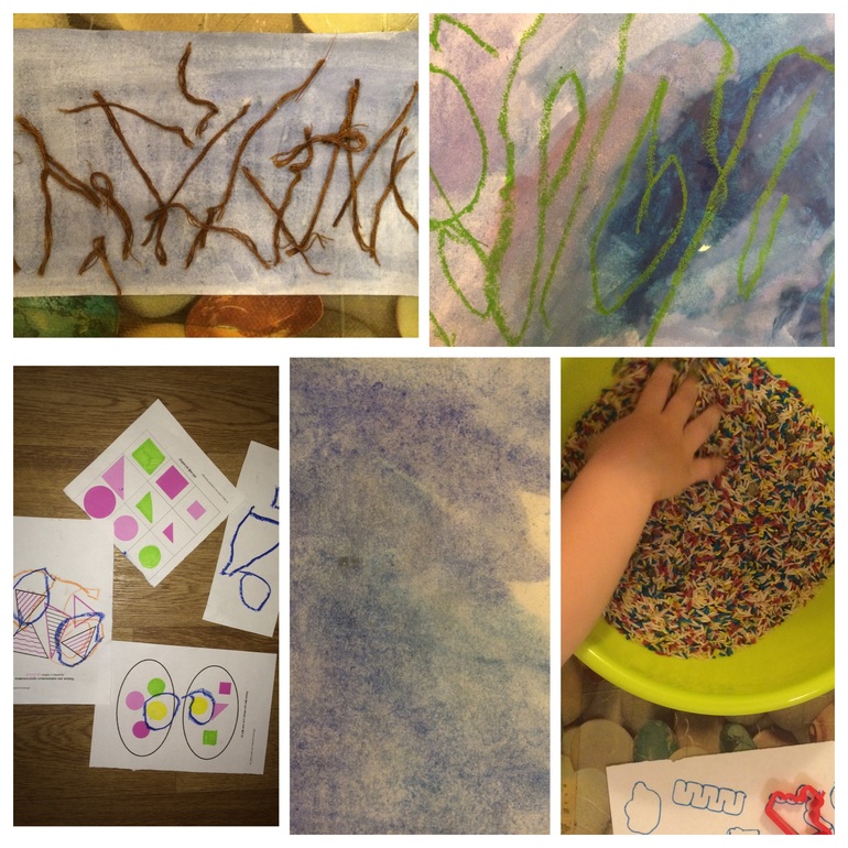 Сначала поставили готовиться наш псевдохачапури:) и рисовали море (2 штуки) пока мама быстренько раскладывала материалы) Одно просто мокрое море, второе мокрое + соль. А то у нас вечно высохнуть ничего не успевает(