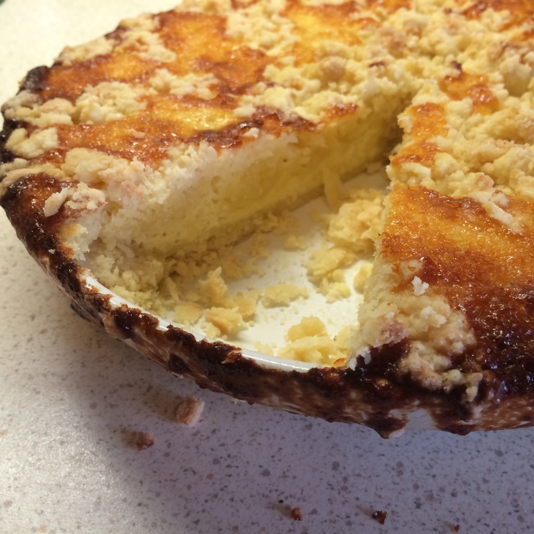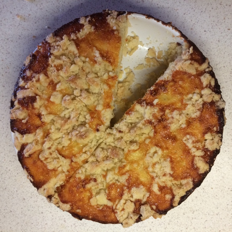 Оставшуюся часть песочной крошки равномерно посыпаем на начинку.