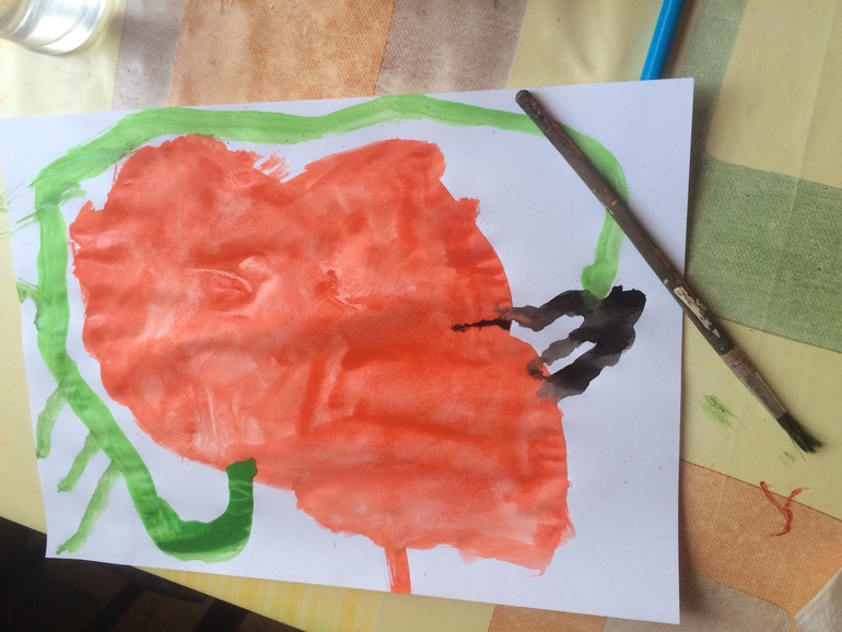 - рисовали с натуры (огурец и 2 помидора:) там еще мама развлекалась заодно:)