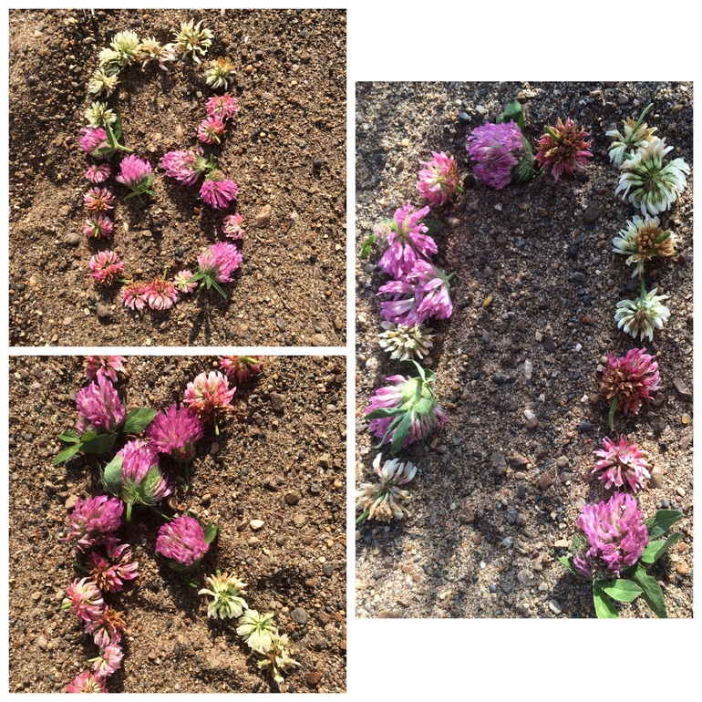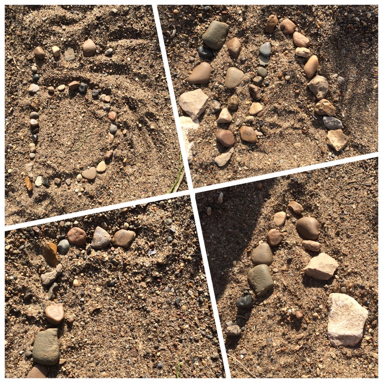 Ну и в завершение выкладывали буквы камешками и цветочками. Из подручных средств так сказать
