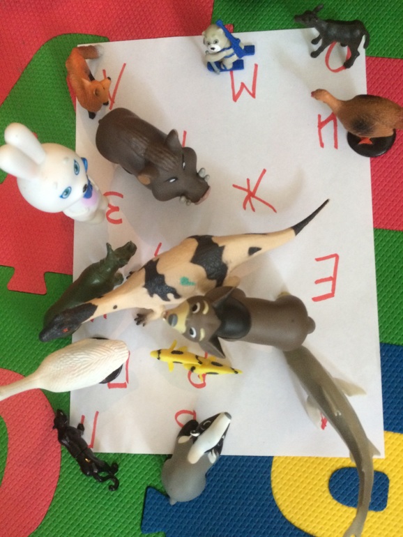 Сначала дома нашли животных на все буквы. оказалось у нас нет енота и жуки все на даче:)