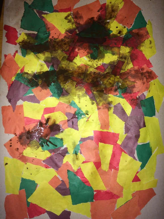 Поделку как предлагала Ирина, мы делали пару дней назад. Творчество совместное форматА3. Акварель брать не советую -вышло бледно. Так что у нас это ковер из осенних листьев:)