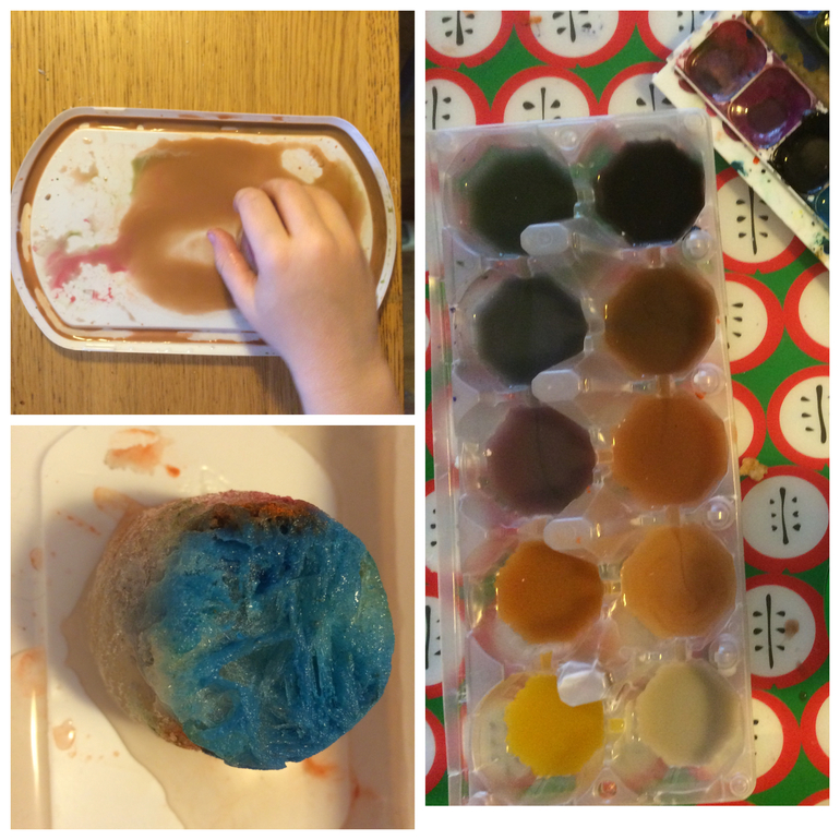 Ре забрал льдышки раскрашивать пока я кормила младшую