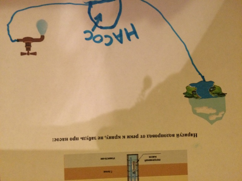 Ну а дальше часть логических заданий - все что прислала Светлана обсудили, обвели, нарисовали. Меня впечатлил насос и то что вода не к крану проведена а именно в кран, чтобы текла.