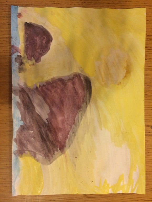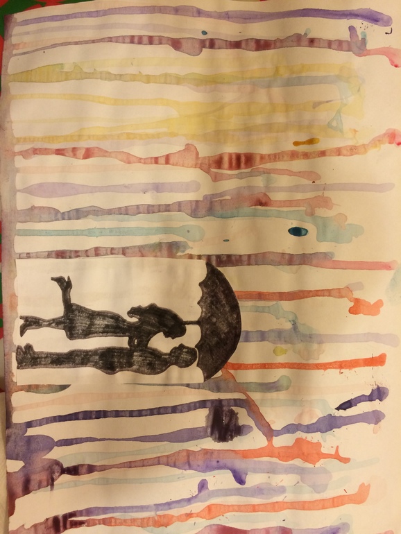 и пошли рисовать дождь по мотивам картины. В этот раз пока сын рисовал мама успела обвести и вырезать фигурку. По-моему очень похоже вышло:)
