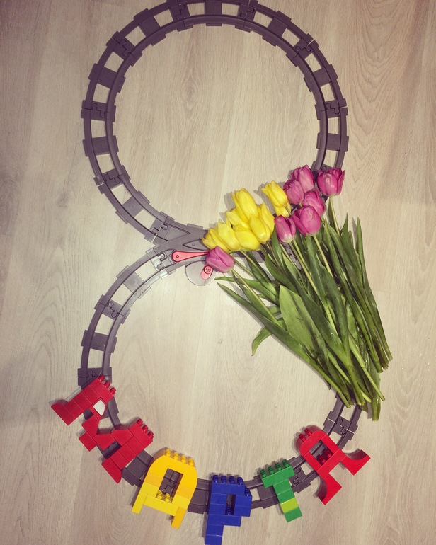 А это вот общее с Малышкой и Грибочком 8 мартовское творчество. Поиграла с детьми в лего)))) А Малышка сама строит башенки из лего кубиков:) Сложит и бежит мне показывать:) мимими))