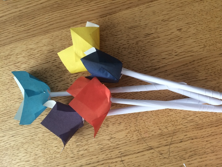 Ну и вот мы с сыном еще цветов наваяли в дополнение к живым:) Кривеньке, зато сам делал Крепили стебелькам вместе.