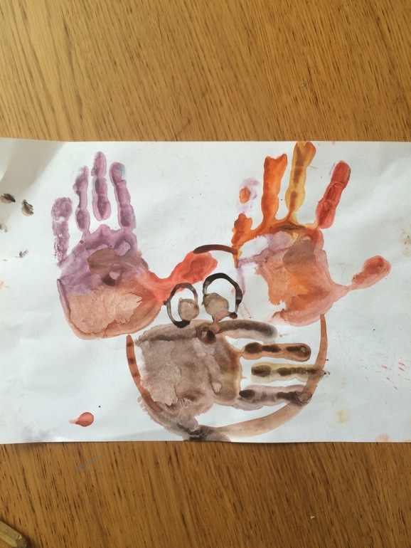 1. Ладошковое творчество. Это Грибочек сам придумал и сделал. Олень. или Лось