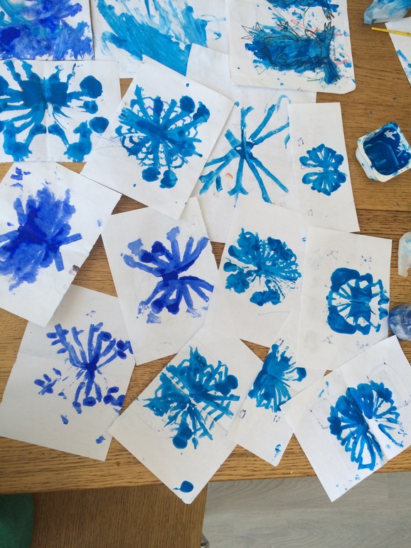 Ох и много же их было:) С Грибочком мы рисовали снежинки. Точнее я 1 раз показала, а дальше он сам уже творил.
