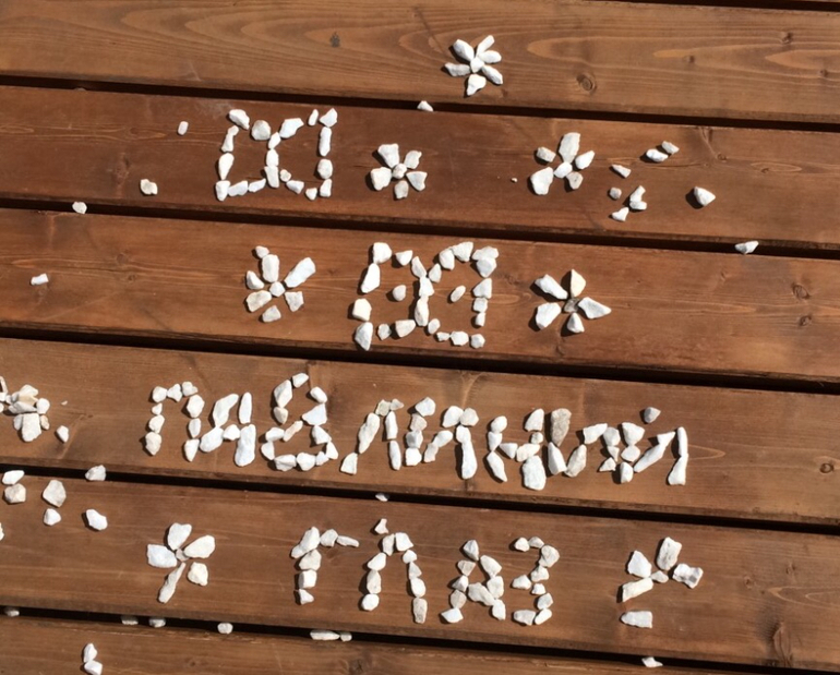 Ну а пока шорты сохли мы играли в спокойные игры))) сушили футболки и выкладывали картинку из подручных камешков.
