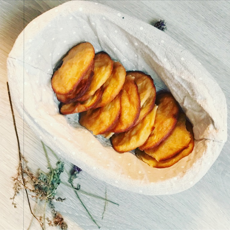 У меня получились вот такие лепешки с тертым яблоком. У мамы выходят почти булочки, потому что мама соду добавляет. Зато полезнее точно в разы, чем жаренные.