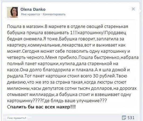 нда.. Я тоже вчера дедушке, который в мусорке алюминиевые банки собирал, 500р дала... ему нужнее.. По виду хороший такой дедушка, достаточно чистый и аккуратный( по мере возможностей своих, я так поняла). Мне его так жалко стало.